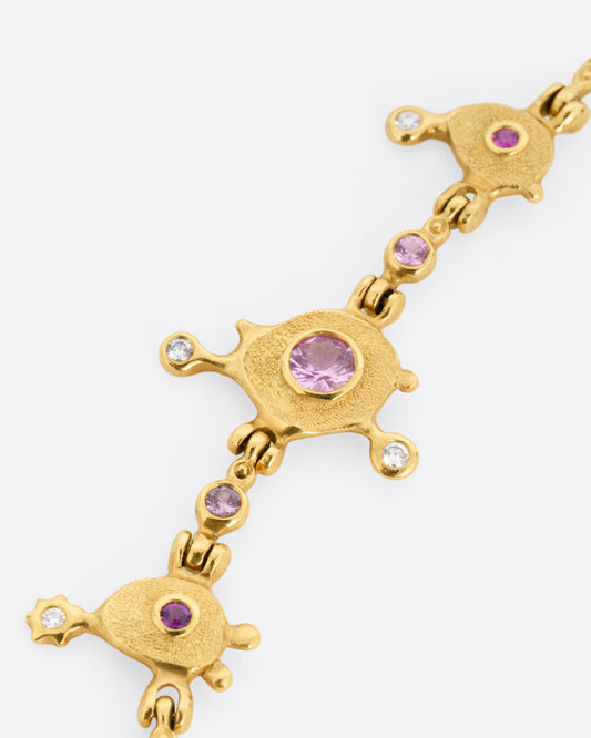 18k yellow gold, Diamonds, Sapphires