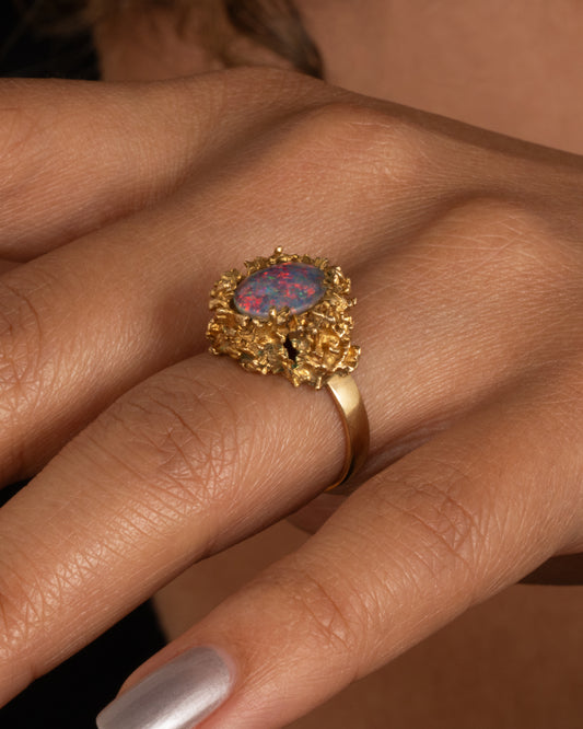 9k yellow gold, Opal