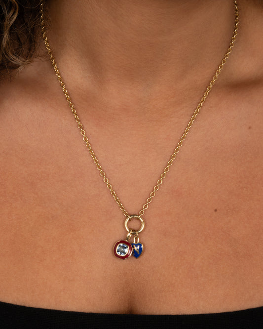 14k yellow gold, Enamel, Sapphire