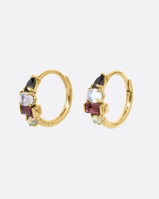 9k yellow gold, Black diamond, Moonstone, Tourmaline, Opal