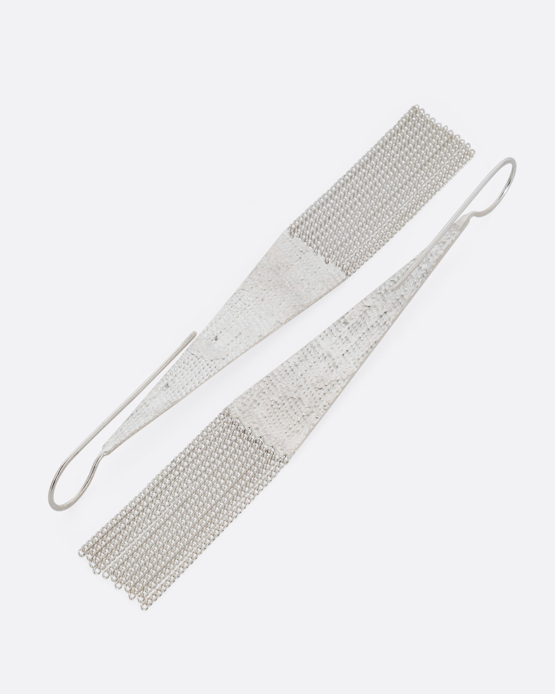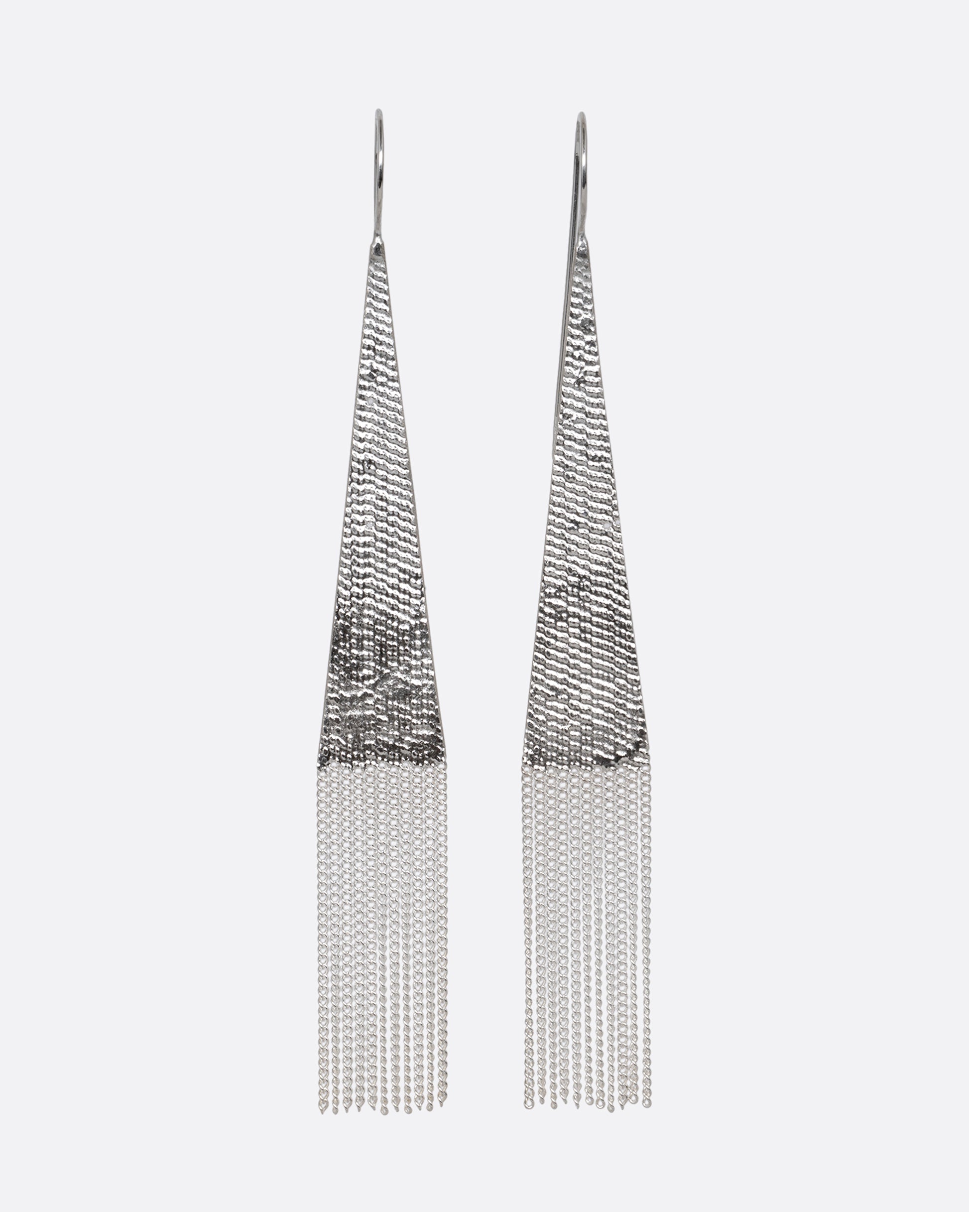 Cable chain fringe dances from these long triangular dangles. A breezy statement pair.