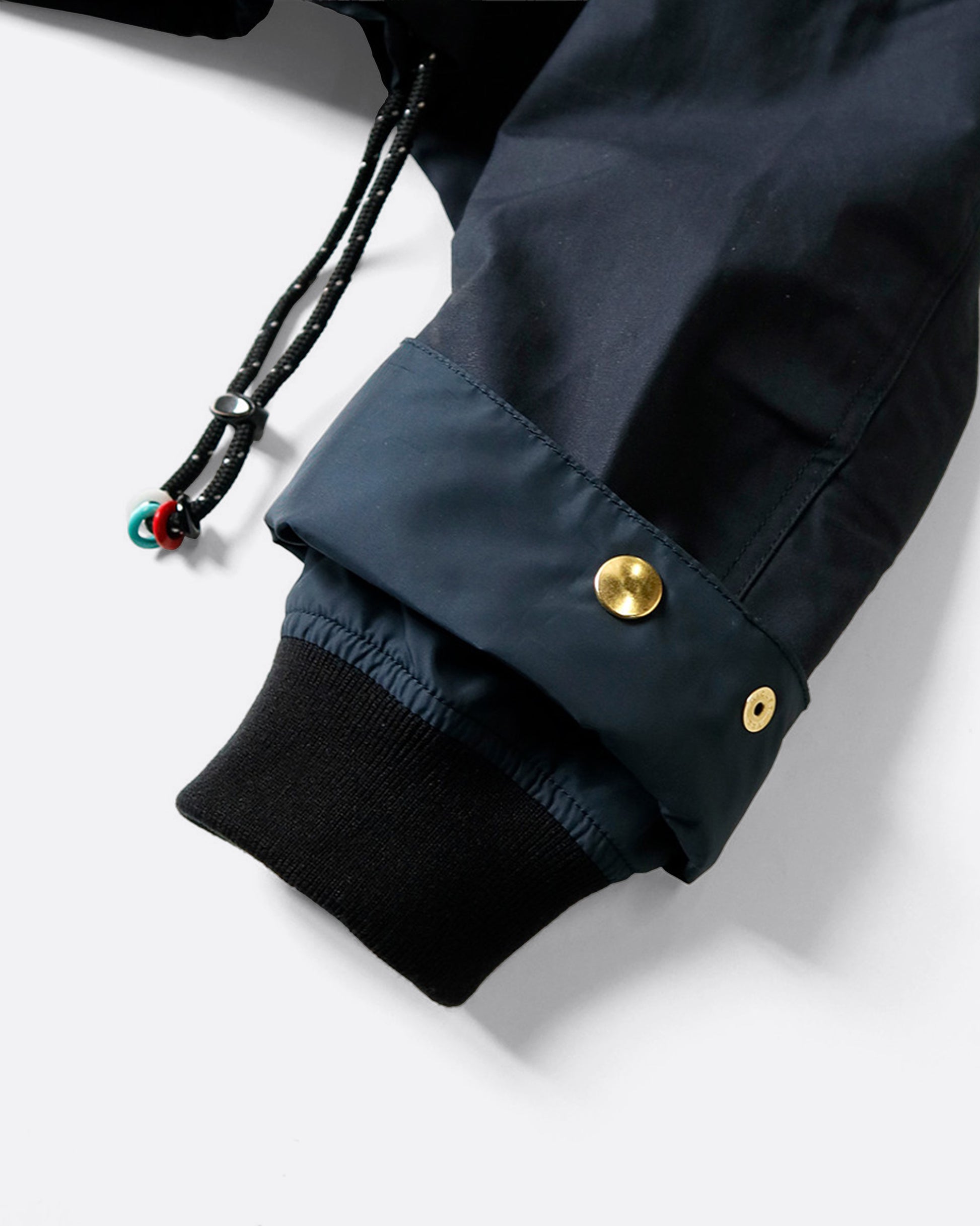 In oil coated high density cotton, this cropped jacket is both functional and chic. Ribbed cuffs keep away the cold, while a detachable hooded scarf allows for versatile styling.