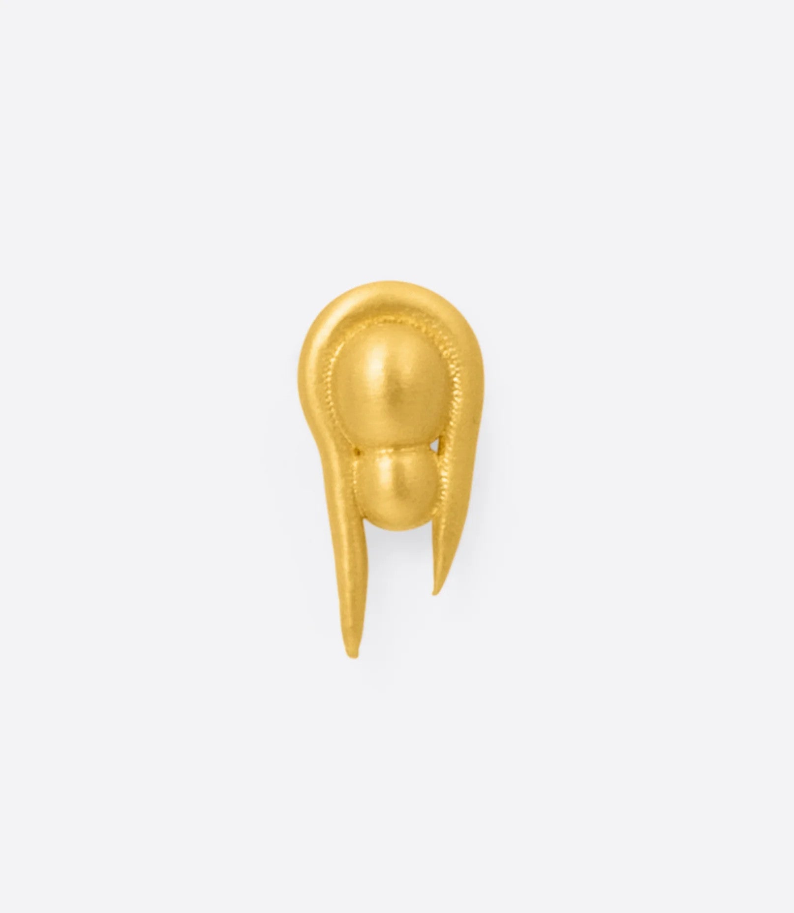 A luxurious high karat gold stud with two stacked spheres; you can wear it facing up or down.