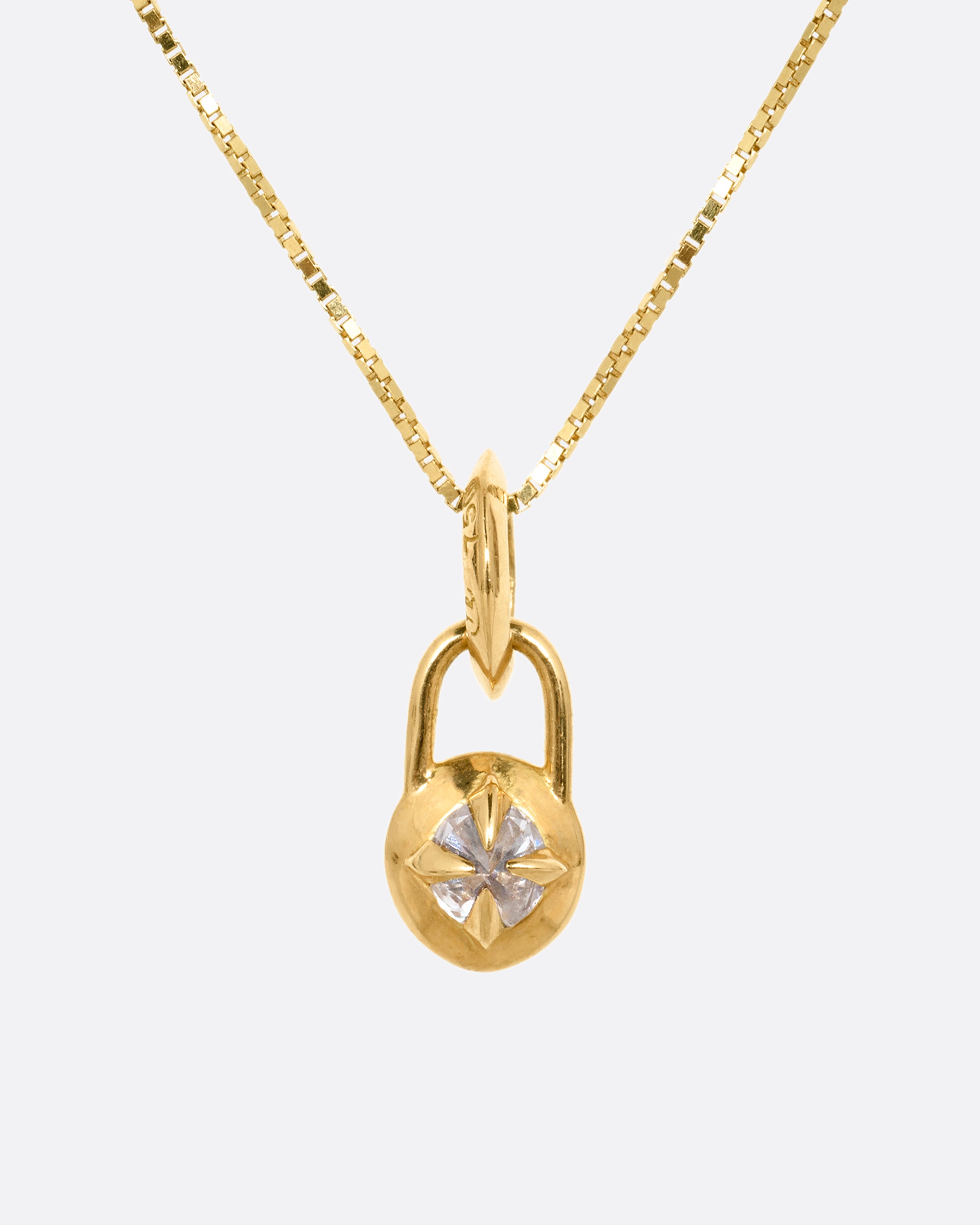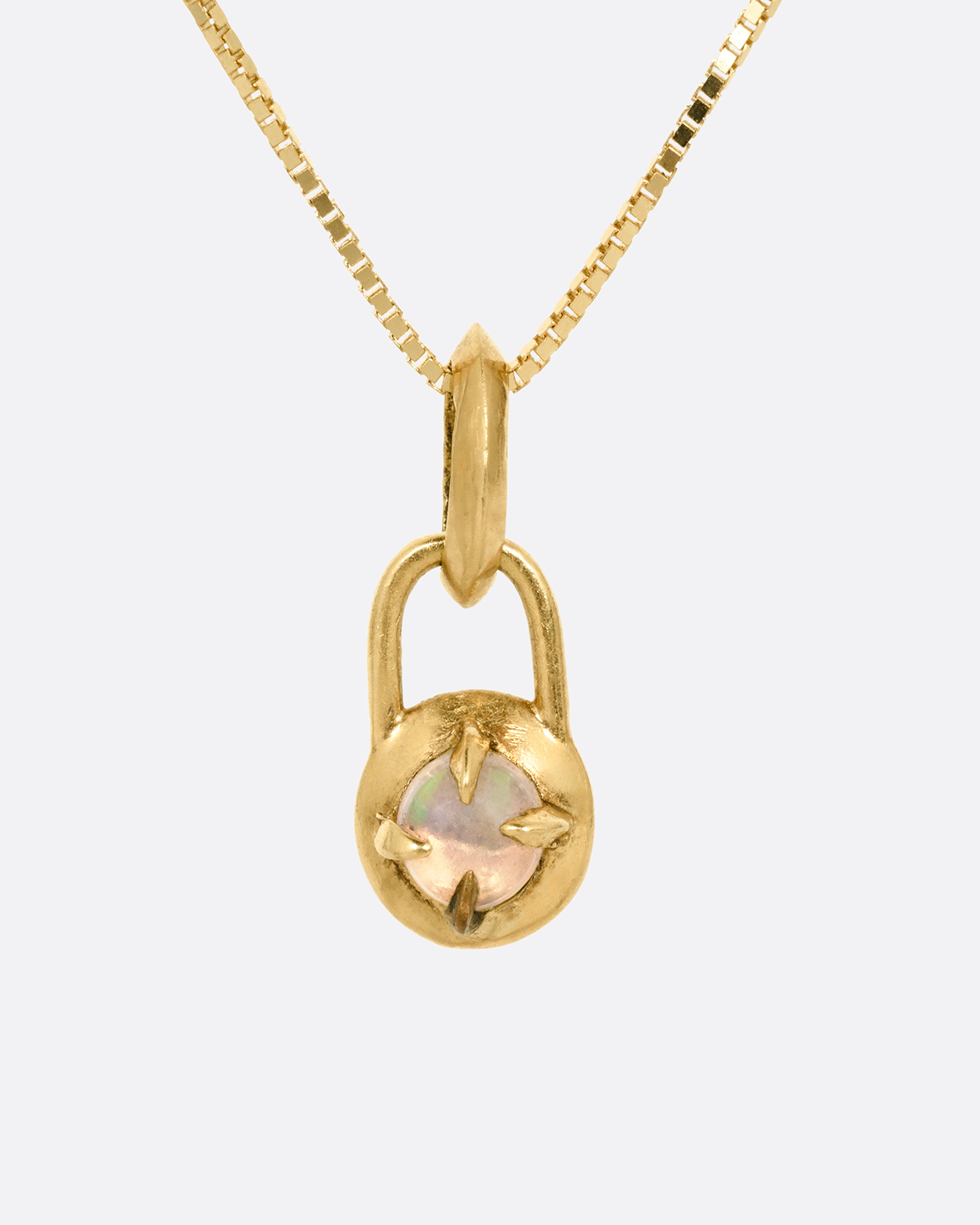 A lush green 'jelly bean' emerald glows from the center of this prong bezel pendant. Add this sleek box chain to your curated neck mess for a pop of color.