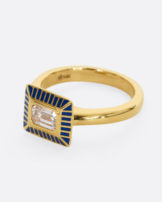 14k yellow gold, Enamel, Emerald