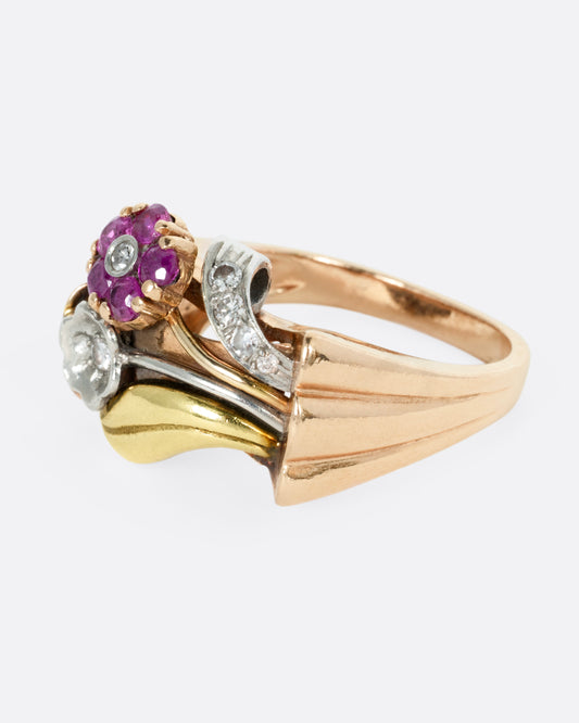 14k rose gold, 14k yellow gold, Rubies, Diamonds