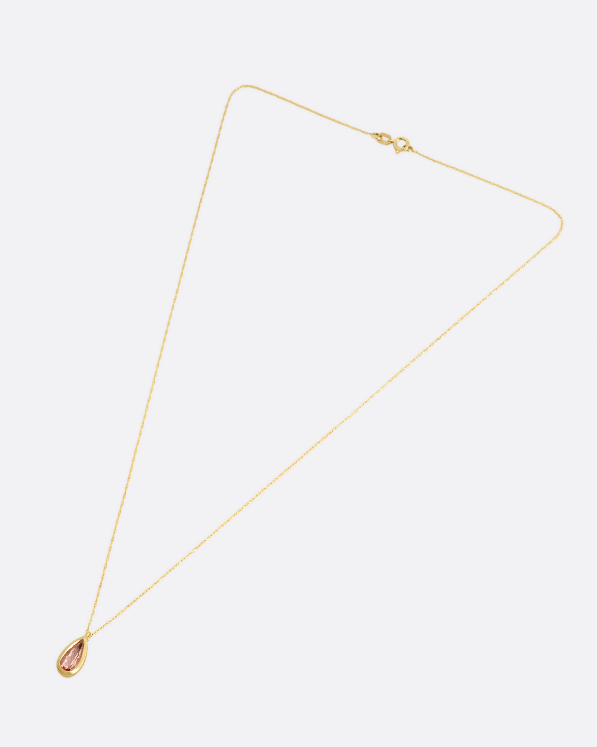 Add an apricot glow to your layered neck mess with this rare Imperial Topaz. Set in a sleek bezel, this teardrop shaped stone hovers from a fine textural chain.