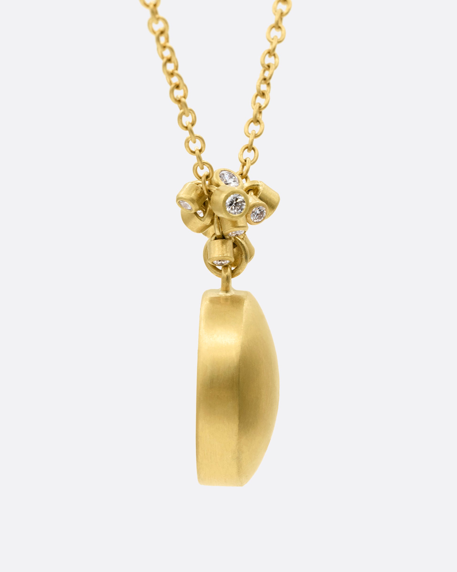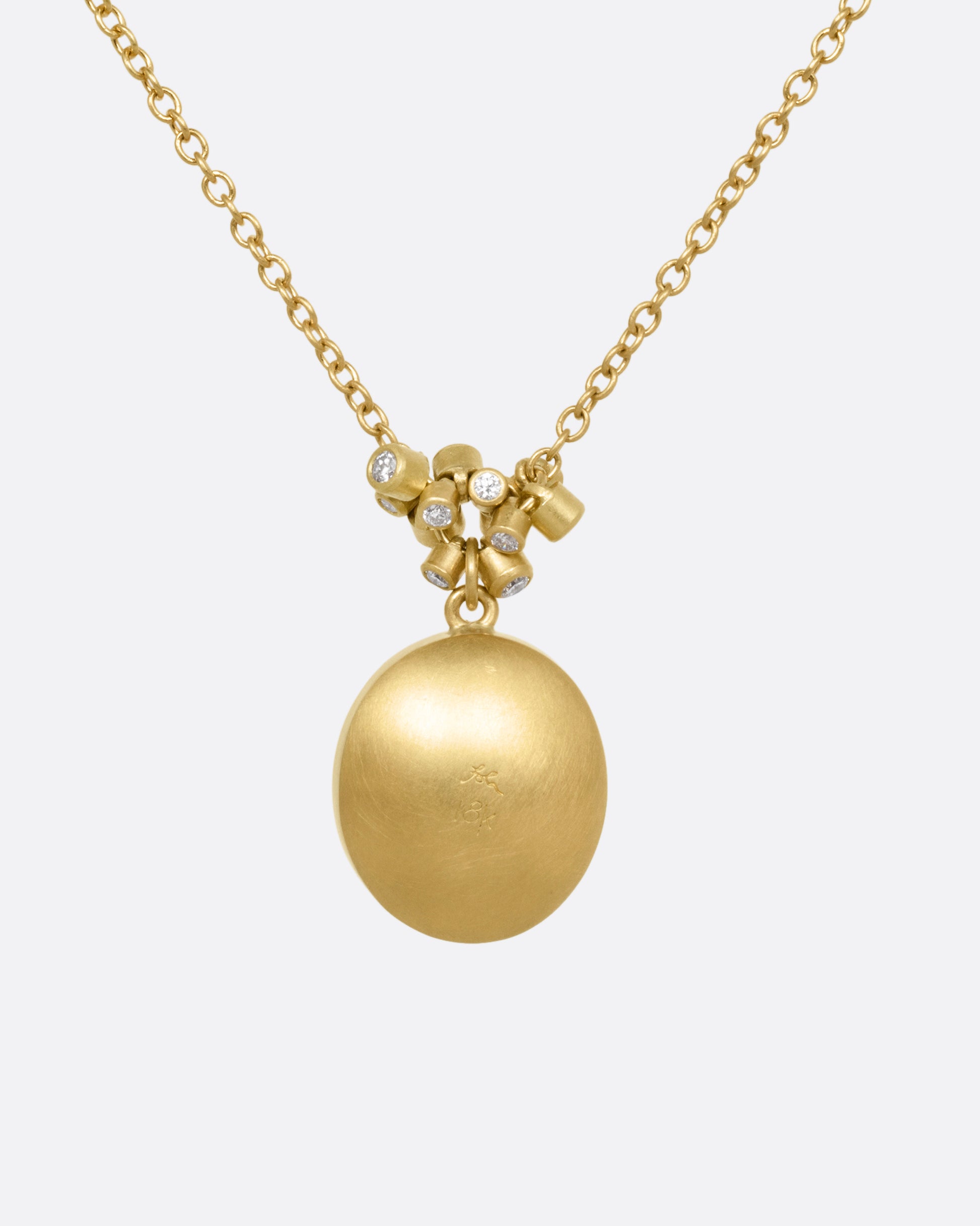 A piece from our 'Hand of the Artist' capsule collection, this amethyst pendant necklace springs from the bench of beloved designer, Lola Brooks. A hand carved strawberry is illuminated by Lola's signature fine bezel, as a sculptural cluster of diamond charms mimic brilliant strawberry seeds. With a clever domed back, the pendant moves with you, catching light and creating sparkle from every angle.