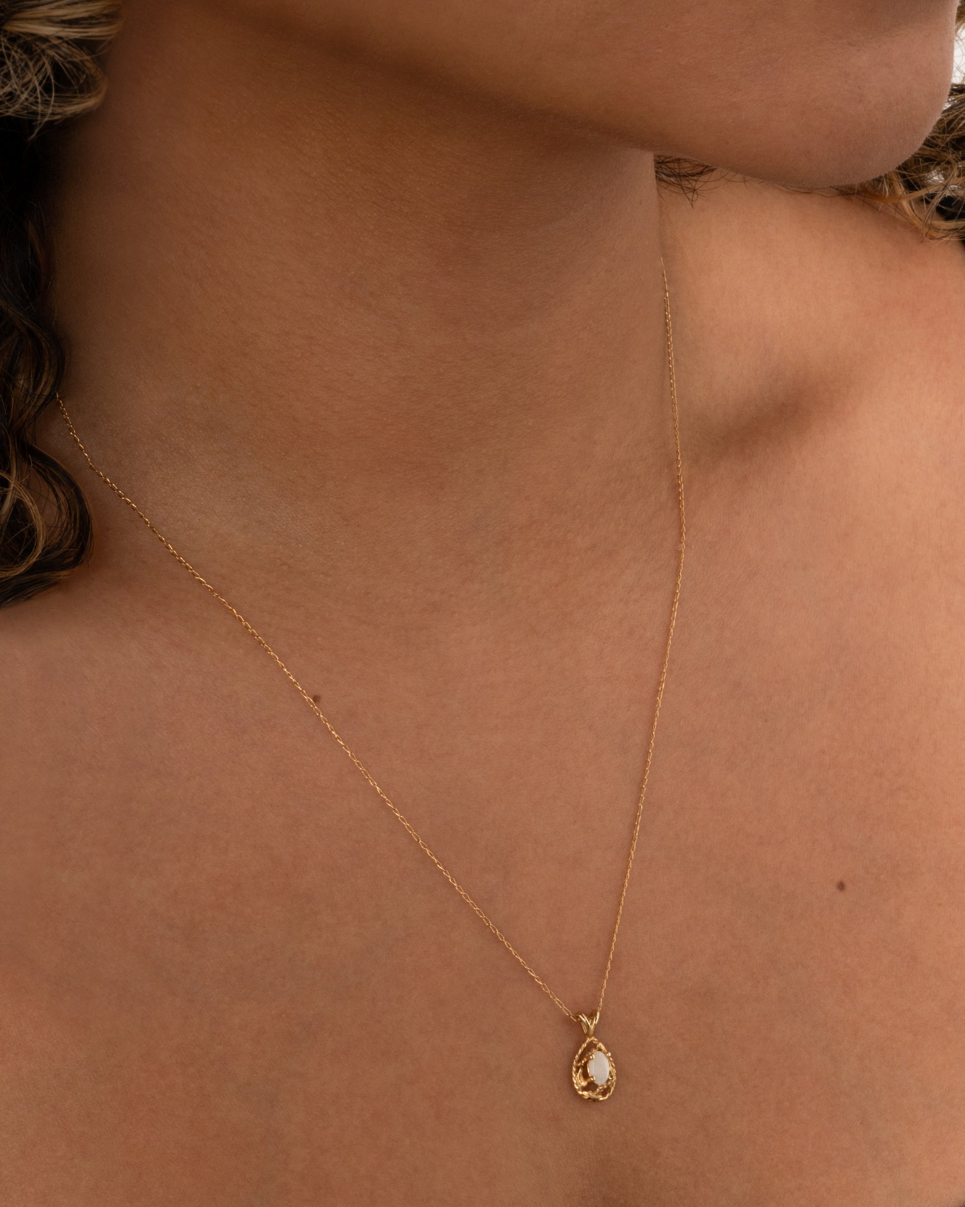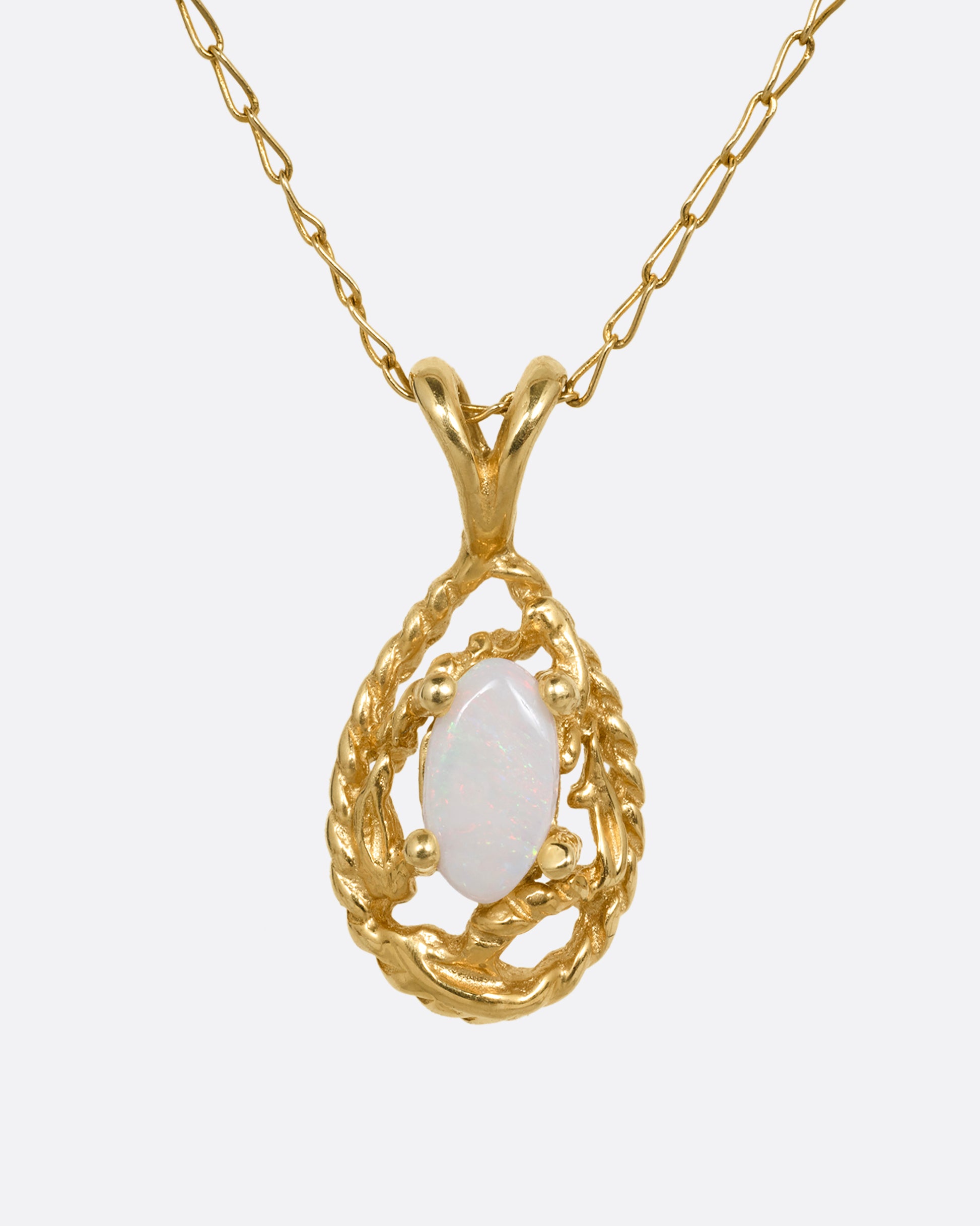 An exceptionally fine cable chain cradles this elegant opal teardrop pendant. Add a delicate flash of iridescence to your neckline.